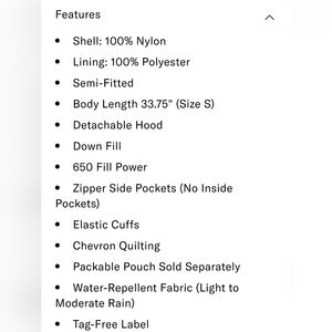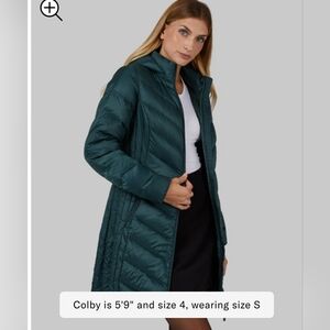 NWT 32° Ultra lightweight packable puffer jacket with hood in darkest spruce. Chevron quilting 650 down fill. Zipper side pockets. Elastic cuffs.Suitable for moderate rain waterproofing. Semi-fitted with a detachable hood. Very pretty classy color. No longer available- sold out online.