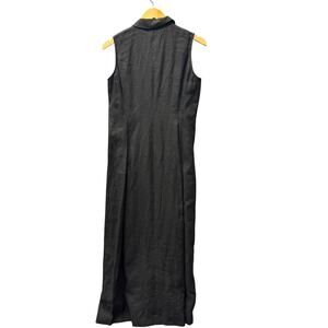 Vintage Harolds Linen Dress Black Maxi Button Up Sleeveless Womens 4 Coastal