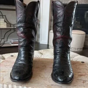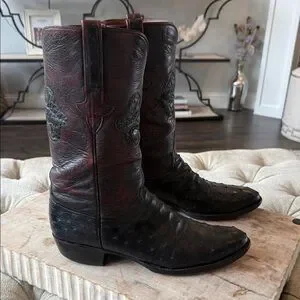 Lucchese Men’s 11.5 Handmade Black Cherry Full Quill Ostrich Cowboy Boots