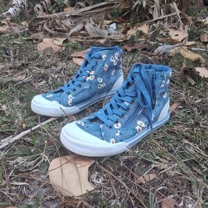 Chic blue high-tops with floral design. Comfortable and stylish for everyday wear. Comes with side zipper. Brand new without tags.