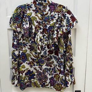 Topshop Floral Ruffle Mock Neck Blouse Size 10