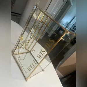 Elegant glass card box with gold accents. Features a lock and 'Cards & Well Wishes' text. The text part is removable. It’s a decal if needed.