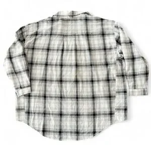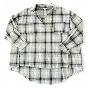 POL Oversized Black and Gray Plaid Button-Down High Low Tunic Top Size Small