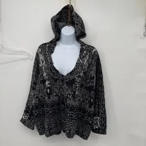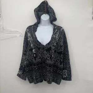 Free People whimsical Womens S over sized Black Gray Lace Pull Over Hoodie