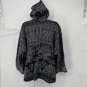Free People Sweater Womens S over sized Black Gray Lace Pull Over Hoodie