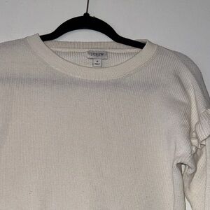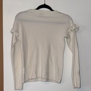 • Chic white sweater with ruffle details on sleeves. Perfect for versatile styling.