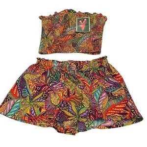 NWT Live 4 truth szS Colorful Leaf Print Two-Piece shorts with tube top set
