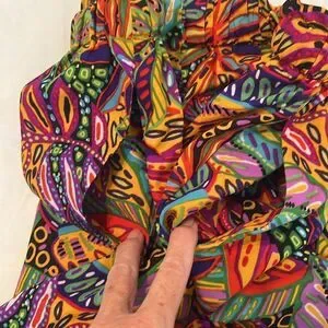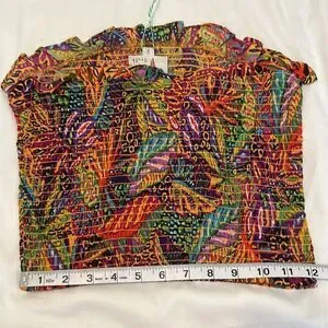 Vibrant two-piece set with a colorful leaf pattern. Includes a smocked top and matching shorts.