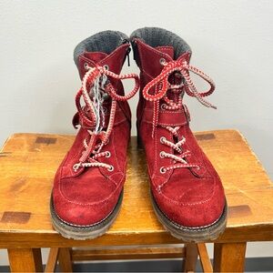 Bo’s. & Co. Colony boots with a knit cuff. Features a lace-up front and buckle accent. One lace is flawed. Gently used. Otherwise boots are in great condition! Soft inside. Suede leather outside. Womens size 41. Equals US size 9.5/10. Made in Portugal.