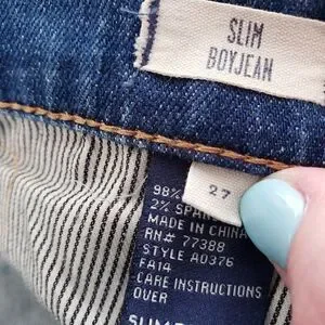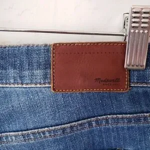 Madewell Slim Boyjean Size 27 Patches Distressed Dark Wash Denim Cotton Blend.