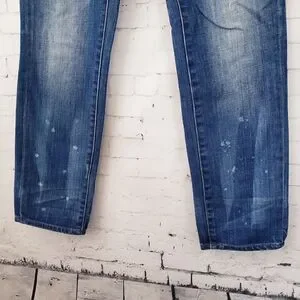 Madewell Slim Boyjean Size 27 Patches Distressed Dark Wash Denim Cotton Blend