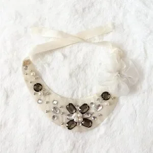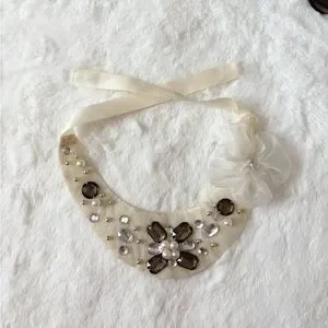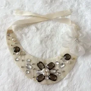 5/$25 🩷 Vintage Elegant Cream and Brown Beaded Rhinestone Bib Necklace