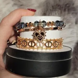 Elevate your style with this chic bracelet trio, featuring elegant gold and black tones. Perfect for any occasion.