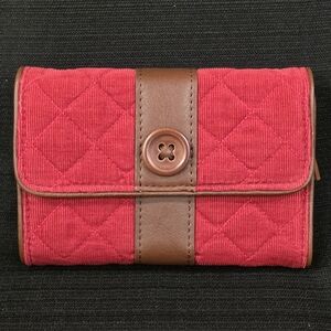 Vintage Vera Bradley Tri Fold Wallet Red Corduroy Brown Leather
