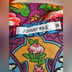 Johnny Was silk top Rose Spark Seline Boho Long Sleeve Blouse medium euc