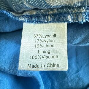 Material: 67% Lyocell, 17% Nylon, 10% Linen (outer) 100% Viscose (inner)