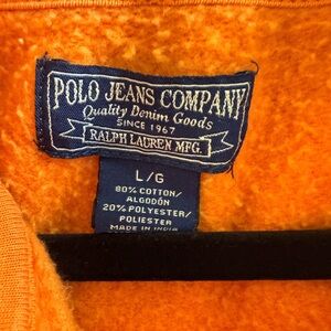 Vintage Ralph Lauren Vibrant Orange Polo Jeans Hooded zip up sweatshirt. Size L