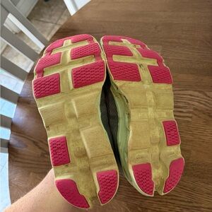Sleek gray design with vibrant pink accents. Lightweight and breathable. Ideal for running and active wear. Worn for a couple 5k / 10k runs. Approximately 200 miles total.