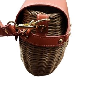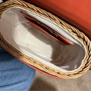 Tommy Bahama tan wicker rattan crossbody bag with coral accents. Removable adjustable strap. Magnetic closure, gold accents, fabric lined. Never used.