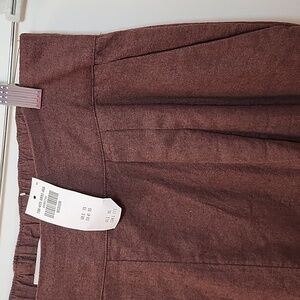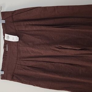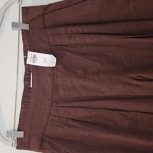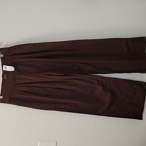 NWT Abercrombie&Fitch 53% Linen Pleated Wide Leg Pants Chocolote Brown Sz M