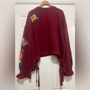Anthropology Maeve x Nathalie Lete Circus Long-sleeve Drawstring Sweatshirt. Size XL. Brand new, perfect condition. RARE!!🔥 This amazing sweatshirt is super sought-after and hard to find. Incredible details, patchwork, embroidery, beading and crystals. Slight balloon sleeves, string on sides to tighten and give the sweatshirt more of a cropped look, gorgeous color. This piece looks like it would cost way above the retail price. Expect a ton of compliments! Slightly oversized, you can size down one but if you like your sweatshirts a little slouchy stay true to size.