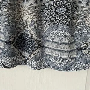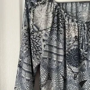 LAURA PETITES Blue & Neutral Boho Print Blouse Size Medium