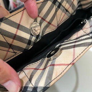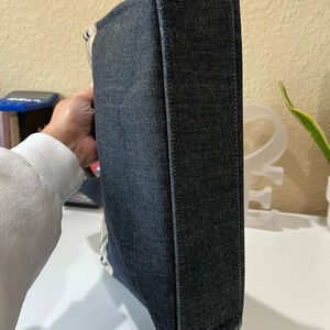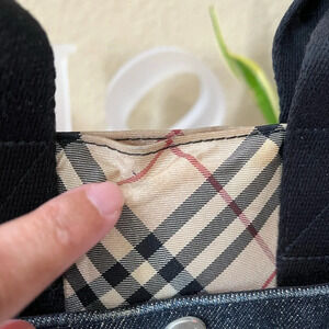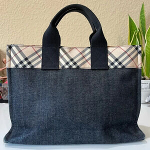 Authentic pre-loved. Denim and nova check combination with snap on closure. Black canvas handles. Denim corner rubs and nova check has tiny bubbling. Very cute and handy 😍
