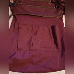 Stone mountain shoulder bag that can convert into a crossbody in a beautiful deep burgundy new with tag has one callouts a few very tiny spots on back in last picture