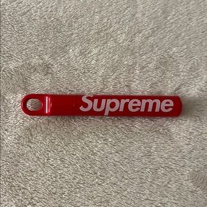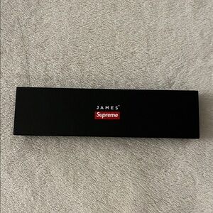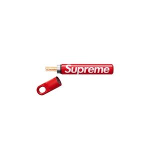 Supreme James Brand Cache in Red. FW23A102. The James Brand has collaborated with New York based Supreme on a limited edition. Red with Supreme logo applied. Holds 8 toothpicks but can also carry things like cash or medication. Take your smallest valuables with you. Sealed aluminum design keeps items secure and dry. Loop for attaching. 3.9” in length, and .5” outside Diameter. Water resistant rubber O ring seal. New in original packing.