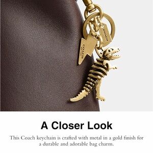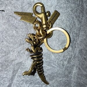 Coach Small Rexy 3D Skeleton Bag Charm Keychain in Brass NEW