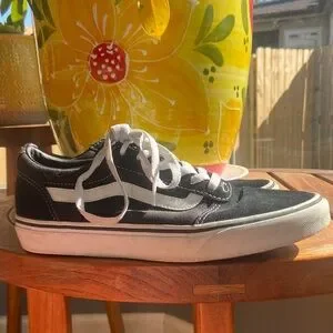 Classic Vans sneakers in black and white. Iconic low-top design. Ideal for everyday style.