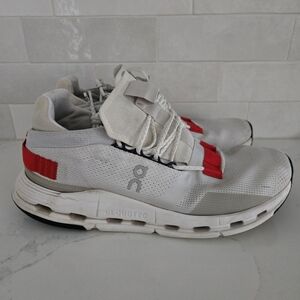 On Running Cloudnova Athletic Shoe White Red Gray Men's Size 10 Cloud