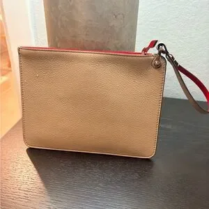 Chic tan wristlet with bold red accents. Sleek design for versatile use. This is the leather pouch that comes w the Cabata tote. Dimension 5.5 x 7.5