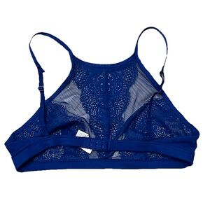 Victoria’s Secret Blue Lace Bralette L Sheer Mesh Unlined Wireless Floral Lace