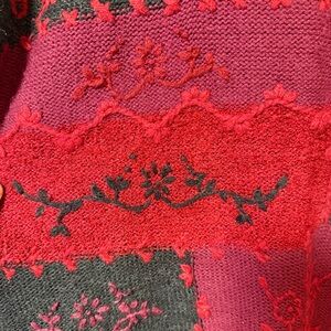 Vintage 90s Womens Floral Patchwork Sweater XL Boho Indie Embroidered Grandma
