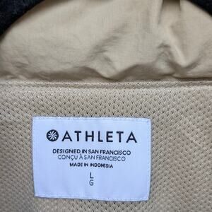 Athleta Everywhere Jacket Womens L Tan Relaxed Long Sleeve Full Zip Hood