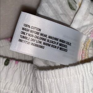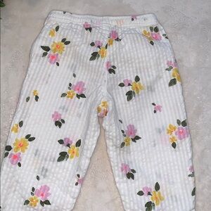 Cute, elastic waist, white cotton pants with yellow and purple flowers. In excellent, clean condition!