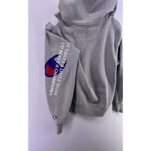 Step out in timeless comfort with this fantastic Vintage Champion Gray Hoodie! This cozy piece is a true classic, featuring a stylish gray perfectly complemented by vibrant red and blue print. The iconic "It Takes A Little More To Make A Champion" slogan adorns the front, showcasing its unique vintage appeal.