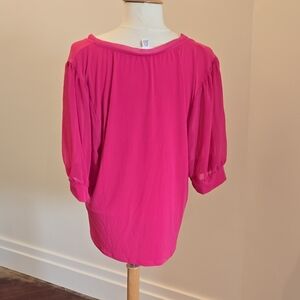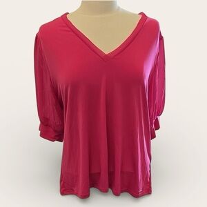 J.Crew Hot Pink V-Neck Short Sleeve Top – Size XL