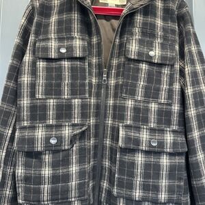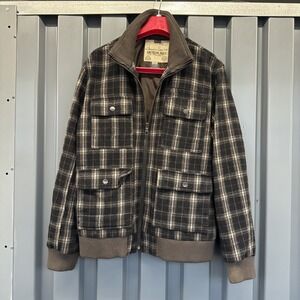 The American Rag CIE Plaid Wool Jacket in size XL for men is a stylish and versatile outerwear piece. Made with wool, this gray plaid jacket is perfect for layering in colder weather. The basic jacket style makes it easy to pair with a variety of outfits, while the XL size ensures a comfortable and flattering fit for men. American Rag Cie is a trusted brand known for quality and on-trend designs, making this jacket a fashionable choice for any wardrobe.