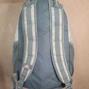 Modern Adidas backpack in heathered gray. Features copper zippers and logo. Ideal for everyday use.