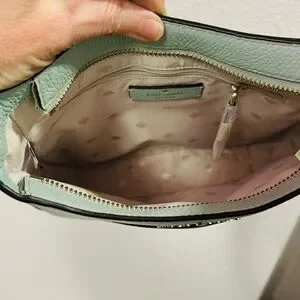 Elegant Kate Spade crossbody in light green. Perfect for daily wear. 8.25 by 8.5