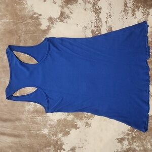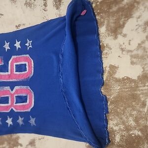 Royal blue tank top featuring 'HOT PINK 86' in coral orange/ pink and white. Perfect for casual outings. Y2K vintage does show some signs of wear paint cracking on front and see hem line.
