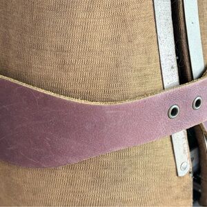 Stylish brown leather belt featuring a brass buckle. Perfect for adding a touch of elegance to any outfit.