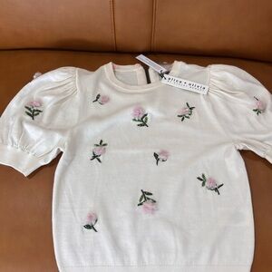 NWT Alice + Olivia Chase Puff Sleeve Embroidery Embellished Pullover