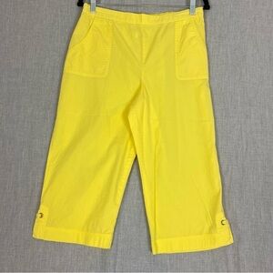 Alfred Dunner Petite Capris. Women's Size 12P. 100% Cotton. Bright yellow. Pull on stryle with flat front waist, elastic back. Side pockets. Split hem with lace accent. Very lightweight.