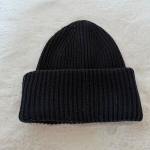 Authentic Acne Studios PANSY N FACE Black Ribbed Knit Beanie OS 56 cm 100% Wool