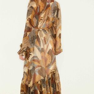 FARM Rio Cream Dotted Macaws Long Sleeve Maxi Dress