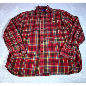 Pendleton Flannel Shirt Mens Size Small Red Tartan Plaid Long Sleeve Button Down