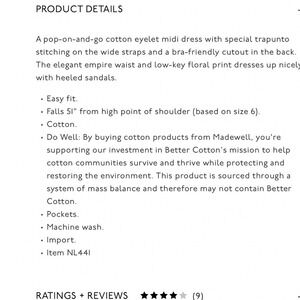 Madewell Cutout back Empire Midi Dress White Cotton Eyelet Square Neck Pockets